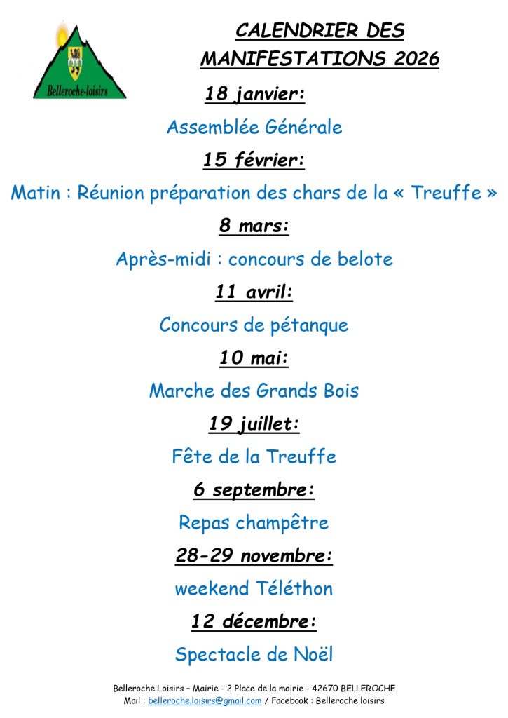 Belleroche Loisirs – Calendrier des manifestations
