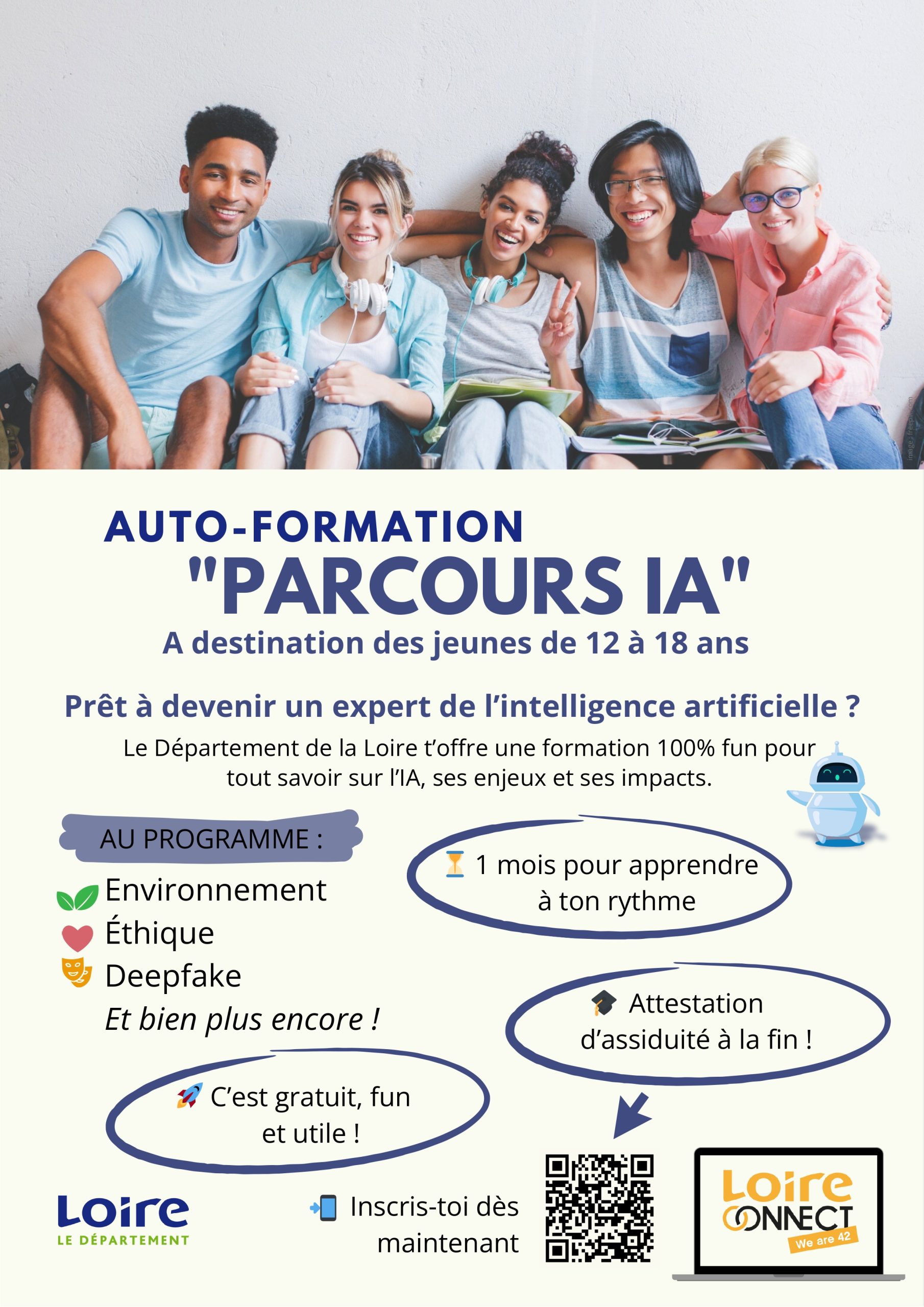 Parcours IA – autoformation pour les jeunes 12-18 ans Collégien.ienne(s) participez au parcours IA et à un webinaire Cybersécurité/cyberharcèlement – Actualités – Département de la Loire